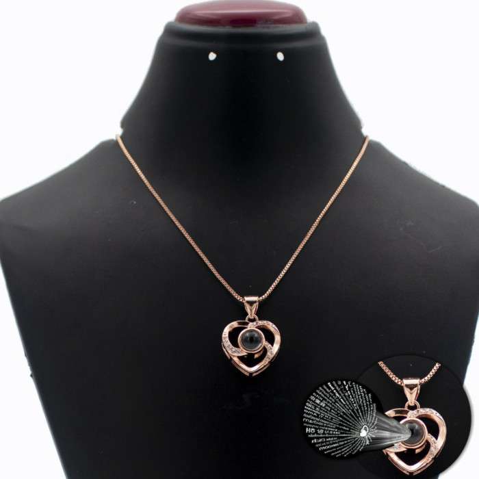Romantic Memory Rose Heart Projection 100 Language I Love You Necklace for Lover Couples- Rose Gold